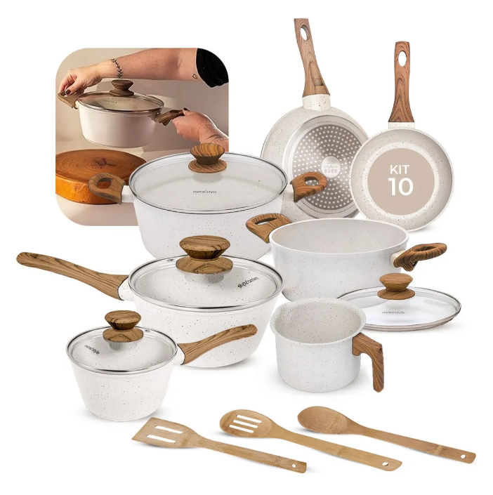 Jogo De Panelas Antiaderente Cerâmica Mimo Style 10 Peças Mármore