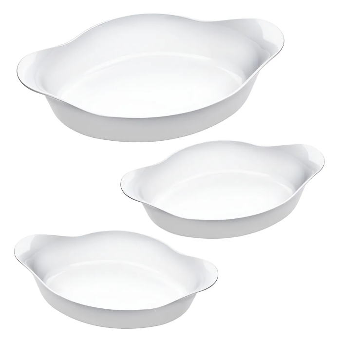 Marinex conjunto de assadeiras oval opaline 3 peças branco